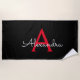 Black and Red Monograma Name Beach Towel. Isto faz o doce e perfeito aniversário de 16 anos, casamento, chá de panela, aniversário, chá de fraldas ou festa de solteira presente para alguém que ama luxo de luxo e estilos quíticos.