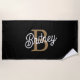 Toalha De Praia Nome do Monograma Elegante Moderno Script Dourado