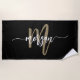 Relaxe no estilo com a Black and Dourada Modern Script Girly Monograma Name Beach Towel. Com um design preto elegante e um monograma dourado ousado em uma fonte moderna, esta toalha combina o luxo com funcionalidade. Feito de tecido macio e absorvente, é perfeito para a praia, para o polo ou para qualquer fuga de verão. O monograma personalizado adiciona um toque único e feminino, fazer esta toalha como um acessório chic para soltar ou como um presente pensativo para aqueles que amam elegância e personalização.