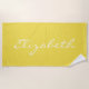 Esta toalha de praia personalizada mostra seu nome em lindas letras escritas à mão em um na moda de verão iluminando fundo amarelo. ideia de presente de excelente.