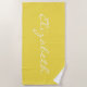 Toalha De Praia Nome do Script Manuscrito Amarelo Elegante de Verã