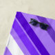 As características deste design de toalha de praia um teste padrão listrado com linhas coloriram várias máscaras de roxo ou de branco. Igualmente caracteriza um nome personalizado no texto colorido branco dentro de uma área colorida obscuridade na parte dianteira. [~Z0000000]