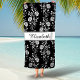 Toalha De Praia Nome Floral Branco e Preto Elegante