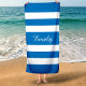 Nome Moderno Personalizado Toalha de Praia Piscina Azul Francês Striped.