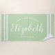 Design personalizado de toalha de praia para uma viagem de fim de semana feminina apresenta um nome personalizado em um roteiro moderno, escrevendo por listras costeiras, com texto personalizado para a ocasião. A cor de fundo verde da casa da moeda pode ser modificada. Visite nosso compro para obter outras opções de cor.