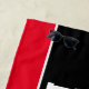 Design de toalha de praia personalizada para crianças e adolescentes apresenta uma bola de futebol personalizada com o número uniforme do jogador, texto personalizado para o primeiro ou sobrenome do jogador e texto moderno para o nome do time do futebol. Faz um presente de favor único para torneios e festas de piscina com a equipe! Na moda e design moderno apresentam cartazes de camiseta desportiva varsity e faixas simples horizontais. O esquema de cores de vermelho, preto e branco pode ser modificado para coordenar com as cores de sua equipe.
