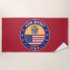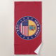 Crachá de Nova Jersey com bandeira de Nova Jersey e bandeira dos EUA cores, forma arredondada. Emblema de Nova Jersey. Selo de Nova Jersey. Coleção dos Estados Unidos.
