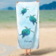 Esta toalha de praia personalizada apresenta as coloridas tartarugas marinhas aqua azuis nadando sobre um fundo de ondas oceânicas de cor d'água abstrato.