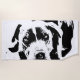 Um esboço cheio de um cão em repouso estica-se nesta toalha, irradiando amor silencioso. Perfeito para aqueles que carregar companhia em seu coração, até pela costa.
