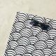 Esta toalha de praia tem um design de Arte Deco de linhas pretas curvas em forma de triângulo num campo de branco repetido através da design.
