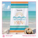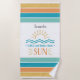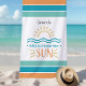 Celebre as férias de verão ou a escapada de uma garota para a praia com esta toalha de praia divertida que apresenta uma ilustração simples do sol e ondas do oceano, listras coloridas tropicais em negrito e dois espaços reservados para texto personalizáveis. Adicione um nome e texto adicional para criar uma lembrança divertida que trará de volta memórias felizes de férias cada vez que você pegar esta toalha.