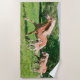 Égua de Haflinger com os potros frisky que funcionam junto através de um pasto em uma paisagem bonita. Uma raça flaxen loura do cavalo da castanha, igualmente chamada haffies ou avelignese, foto tomada por Katho Menden. Esta toalha de praia é uma ideia do presente para amantes http://www.zazzle.com/kathom_photo do cavalo -