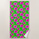 Beach Towel em um padrão de cor rosa-d'água, cor-de-rosa, rosas com folhas em tons de verde-esmeralda