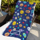 Celebrar o sistema solar com esta tortuosa toalha de praia do banheiro do espaço exterior. Towel tem um sol feliz, planetas felizes (Mercúrio, Vênus, Terra, Marte, Júpiter, Saturno, Urano e Netuno), assim como planeta anão feliz Plutão, asteroides e estrelas. Personalize a toalha com o nome do seu jovem amante do espaço. Faz um excelente de aniversário personalizado, Natal ou outro presente de feriado!