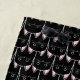 Um divertido padrão ilustrado de muitos gatos pretos encarando sua alma com aquele olhar largo. Alguns dos gatos estão sorrindo, outros têm um olhar vazio e alguns têm os olhos fechados! Eles têm orelhas e narizes cor-de-rosa.