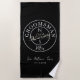 Toalha de praia elegante, moderna e trendy para padrinho com monograma - iniciais, nome, local, data, desenho exclusivo de casal de pássaros em amor romântico e caligrafia manuscrita trendy.