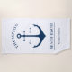 A praia/toalha de piscina náutica apresenta um estilo costeiro com uma âncora elegante de barco e texto personalizado que pode ser personalizado com um sobrenome familiar + casa de praia (ou outro título) com o ano estabelecido e a localização. Design inclui um esquema clássico de cor azul e branco do marinho.