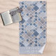 Uma toalha de praia de design moderna, com um padrão geométrico nas cores do oceano Atlântico, com uma área de fundo de texto (opcional) e texto personalizado (também opcional). Bonita para qualquer amante de praia ou hotel, B&B ou casa de hóspedes.