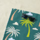 Um meio século, padrão retrô de palmeiras brancas, verdes e castanhas-claras contra um fundo verde-escuro.