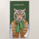 Características que deste design um o inverno do tigre pronto vestindo seu invista para baixo, lenço da malha e camisola verdes do Natal.