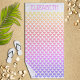 Adicione qualquer nome a este padrão cardíaco bonito e pastel brilhante em uma toalha de praia amarela, pêssego, laranja, rosa e roxa para um dom perfeitamente único.