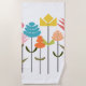 Esta toalha de praia tem uma design de flor moderna do século médio feita de praças, ovais e diamantes que foram manipulados para formar flores.