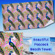 Toalha De Praia Pavão Verde Azul Iridescente, Dourado a Rosa