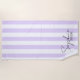 Celebre a noiva em estilo com esta elegante lavanda e toalha de praia listrada branca com personalização de nome personalizado. Com uma letra chic e uma etiqueta "BRIDE" arrojada, esta toalha é perfeita para festas de solteira, dias de praia, getaways spa, ou lua de mel. Suave, na moda e totalmente digno de Instagram, é um presente pensativo e divertido para a futura noiva.
