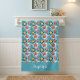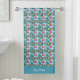 This nautical watercolor starfish beach towel design is complete with a seamless pattern of pink, yellow, and blue starfish as well as pretty blue background color and a place to add your name.