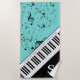 Toalha de praia na moda moderna, com teclado de piano e notas musicais em preto e branco, personalizada com seu monograma e personalizada com seu ditado, título ou outro texto contra uma cor verde-menta editável. ALTERAÇÕES: Você pode alterar a cor de fundo ou o estilo, cor, tamanho e posicionamento da fonte de texto clicando em PERSONALIZAR AINDA MAIS para uma aparência personalizada ou simplesmente excluir qualquer texto de amostra para deixar esse vazio de área. Entre em contato com o designer ANTES de fazer o pedido via Zazzle Chat ou makeitaboutyoustore@gmail.com se você quiser que este design seja modificado ou em outro produto.
