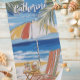 Cena de praia divertida e colorida com um guarda-chuva e uma cadeira de praia listrados que é facilmente personalizada. Toalha de praia excelente para férias ao sol, Spring Break, hora de piscina, festas de solteira e praia oceânica divertida!