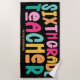 Uma toalha de design de praia divertida e colorida "Professora do Sexto Grau" num fundo preto. Torne-o mais especial personalizando-o com o seu nome! Uma ideia de presente de excelente para a Semana de Apreciação do Professor! Para perguntas ou pedidos relativos a esta design, por favor contacte-nos através do chat; teríamos todo o prazer em ajudar!