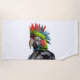 Engraçado Punk Rocker Parrot com o penteado mohican vestindo uma jaqueta de couro.
