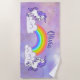 Rainbow e Unicorns Design Beach Towel com personalização personalizável. Para nenhum texto, exclua o nome da amostra e deixe o vazio.