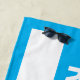 Toalha De Praia RESERVADO, texto branco sobre faixa azul-céu/borda
