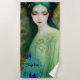 Toalha De Praia Retrato da Mulher Fantasia Elegante em Verde e Azu