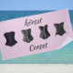Retroglama divertido: Flirty, feminina, e cheio de sofisticação, para um pouco de brilho extra perto da água. Além disso, é personalizável — adicione um nome para um toque pessoal! Esta toalha de praia rosa pálida apresenta quatro córsons pretos antigos, dando-lhe um toque divertido de glamour sofisticado.