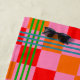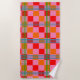 This beach towel has a mid-century modern design of red, pink, and orange squares and green and blue lines forming a plaid design. If you like different colors, message me.
