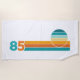 Retro vintage style sunset on extended horizontal stripe design with 85 (1985) typography in the style of the 1980s.