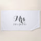Esta toalha de praia minimalista de escrita de ricos é o presente perfeito para apresentar a noiva para um chá de panela simples. O design apresenta uma bela fonte de caligrafia em fundo branco.