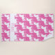 Toalha de praia branca personalizada adorável do teste padrão da silhueta do unicórnio das meninas. Teste padrão repetido dos unicórnios brancos em um fundo cor-de-rosa brilhante. Personalize à cor do fundo da mudança. Personalizado com nome na pia batismal cor-de-rosa na listra branca. www.SamAnnDesigns.com