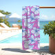 Uma toalha de praia impressionante de flores tropicais em uma paleta de cor branca e azul rosa tropical clássica. Perfeito como presente para alguém especial que ama ir à praia em estilo tropical. A trabalho de arte nesta praia de flores tropicais foi criada pelo artista Totalmente Costeiro Jillee K. Copyright © Totalmente Costeira Todos os Direitos Reservados 2023