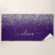 Toalha De Praia Roxo Silver Glitter Girly Glam Monograma