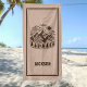Rustic Modern Mountain Custom Beach Towel with hand drawn style mountain scene with trees and sun. Add your own custom name! Makes a great gift for the guy in your life.