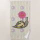 Sadie o caramujo paisley sorri enquanto ela sobe em sua concha listrada sob suas flores rosa favoritas. Um padrão de videiras e círculos escondido se senta em uma base de creme pálido para criar um pano de fundo fofo para a cena.