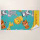 Uma bela toalha de praia, esta design apresenta leões bonitos, girafas, tigres, elefantes e zebras. Uma verdadeira aventura safari, personalize seu nome no fundo. Excelente para uma criança, peça sua toalha de praia hoje! Trabalho de arte criado por: Prettygrafik design (https://www.etsy.com/shop/Prettygrafikdesign)