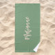 Toalha De Praia Script de nome personalizado do pêssego verde de s