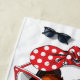 Características que deste design um cão descuidado do Spaniel de rei Charles se vestiu em um casaco de lã listrado, óculos de sol vermelhos e com um headband das bolinhas.