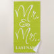 Procurando uma toalha elegante para sua próxima viagem de praia? Olhe só o nosso costume verde e branco, Sr. e Sra. Beach Towel! Esta bela toalha é feita com um material de algodão luxuoso e apresenta um Sr. e Sra. design personalizados, verde e branco. Esta toalha é perfeita para qualquer casal casado ou família que queira adicionar um toque de classe às suas férias na praia!
