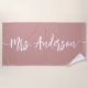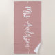 Celebre seu novo status de noiva com esta toalha de praia personalizada cor de rosa poeira com o seu novo sobrenome em letra cursiva branca com floreios no início e no final. É um ótimo presente de casamento, chá de panela ou lua de mel.